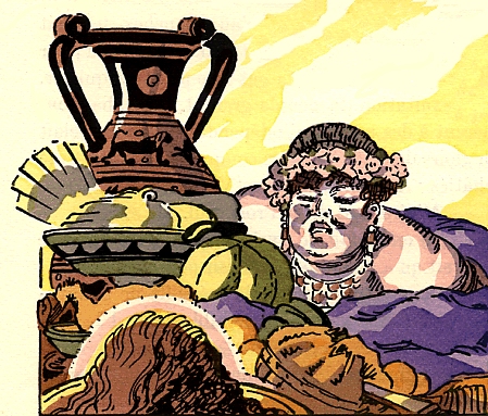 Mais Aulus était penché au bord du triclinium, le front en sueur, le visage vert, les poings sur l'estomac.