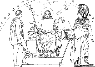 Et le Père des hommes et des Dieux commença de leur parler, se rappelant dans son coeur l'irréprochable Aigisthos que l'illustre Orestès Agamemnonide avait tué. Se souvenant de cela, il dit ces paroles aux Immortels :