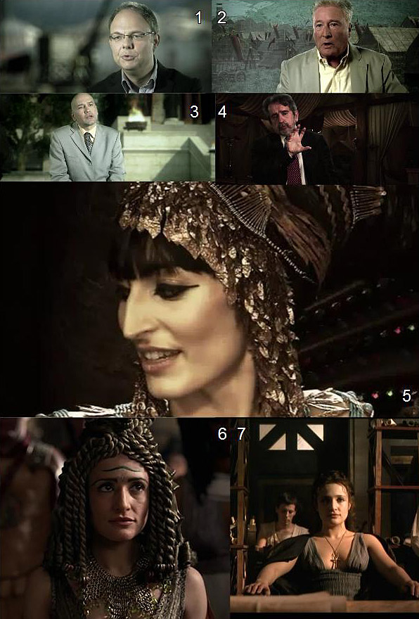 De 1 à 4 - Les chercheurs / 5 - Cléopâtre dans Le Destin de Rome / 6 et 7 - Cléopâtre dans la série Rome