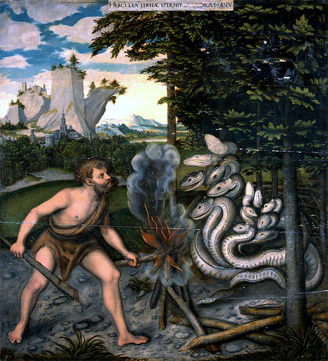 L'hydre de Lerne est l'un des douze travaux d'Héraklès / Hercule, l'un des plus célèbres épisodes de la mythologie gréco-romaine relatant les exploits accomplis par un héros qui personnifie la force. Ceci s'explique par sa parenté divine : son père biologique est Zeus. En lui donnant naissance, celui-ci voulait se donner un fils capable d'être pour les immortels comme pour les mortels un puissant protecteur.