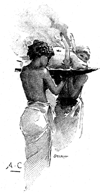 Tel fut le premier service, où les convives choisirent par petites bouchées les bons morceaux de chaque poisson, et laissèrent le reste aux esclaves.