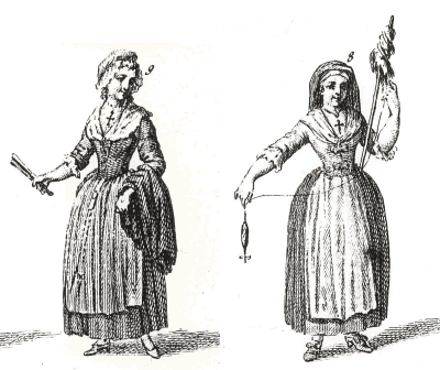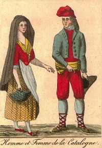 La vêture des Roussillonnaises d'humble condition est simple : nous avons l'exemple en 1761, de Catherine Vilar qui reçoit en dot lors de ses noces à Fontcouverte dans les Aspres, un habit nuptial consistant en une jupe de serge, un corset et un capuchon d'étamine, un tablier de papeline, une entre-jupe de ratine et un corset dit camisole de drap de la terre (6).